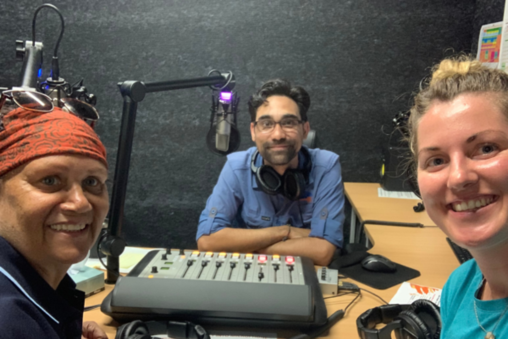 Shortly after the Kimberley Floods, a staff member from Goolarri Radio, a community radio station with a First Nations focus, uploaded a time and skills offer to GIVIT's online warehouse to assist with promoting GIVIT's role in the recovery. Sarah dropped into Goolarri (image below middle) and chatted with Matty J about how locals could access help.