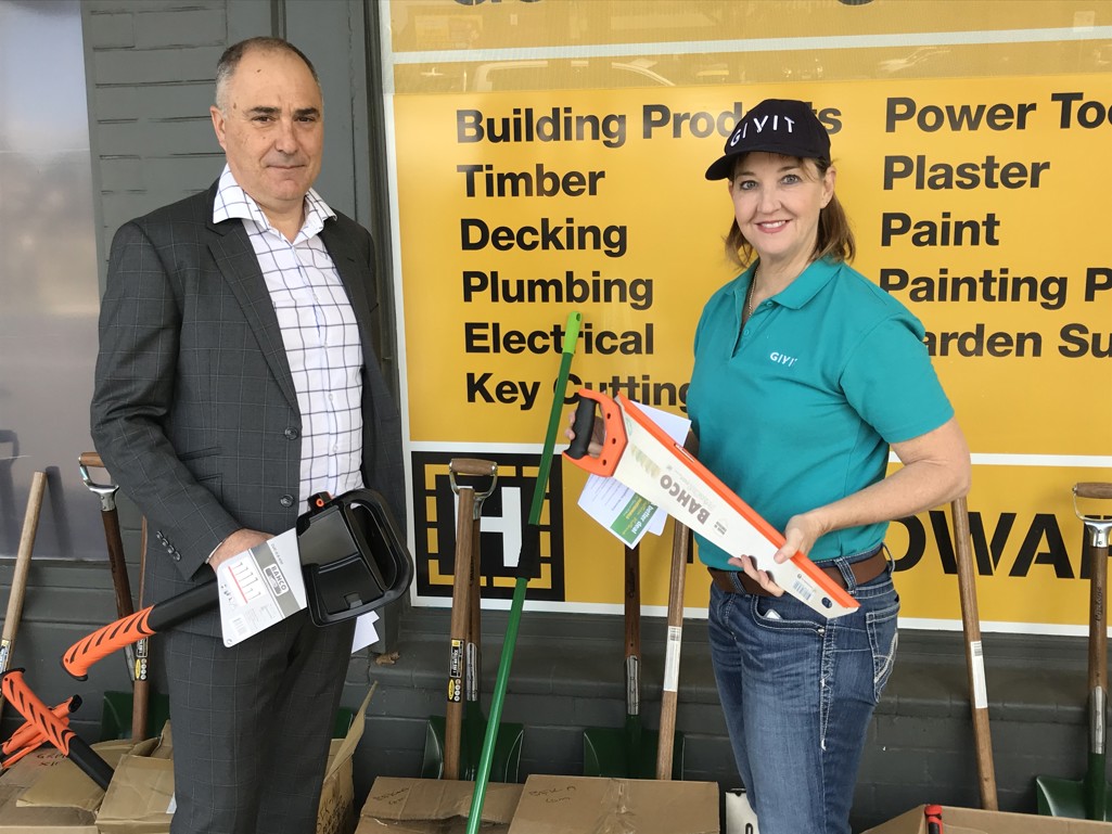 Individuals, service organisations and businesses donated thousands of dollars to buy the tools. GIVIT’s Engagement Officer, Lisa Herbert, was in town to contribute by using GIVIT donated funds to purchase 10 tool kits, worth a total $3300.
