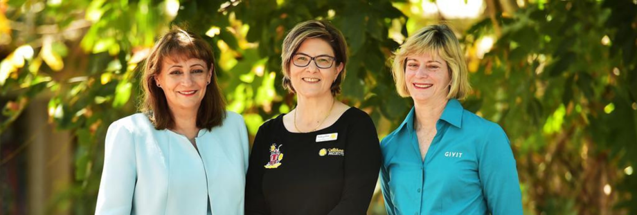 Mayor of Townsville Jenny Hill, Althea Projects CEO Paula La Rosa (Wee Care Residential) and GIVIT Queensland Manager Jo Beadle, as featured in the Townsville Bulletin