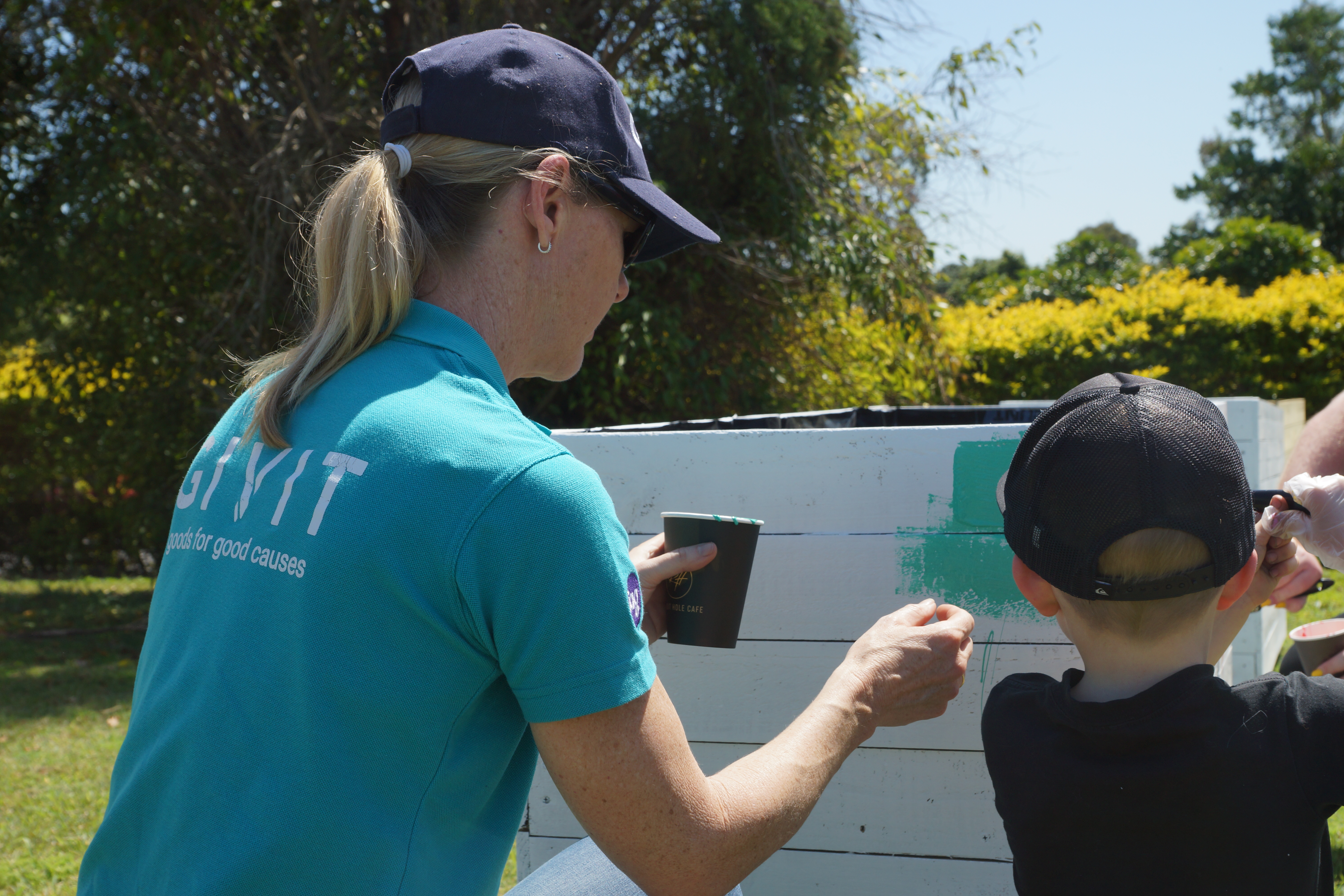 A community garden space in YMCA Cannon Hill has since been offered to surrounding residents where GIVIT appreciatively distributed donated Taubmans paint. After months of hard work, community members picked up a paintbrush and helped brighten the community garden space adding some final touches.
