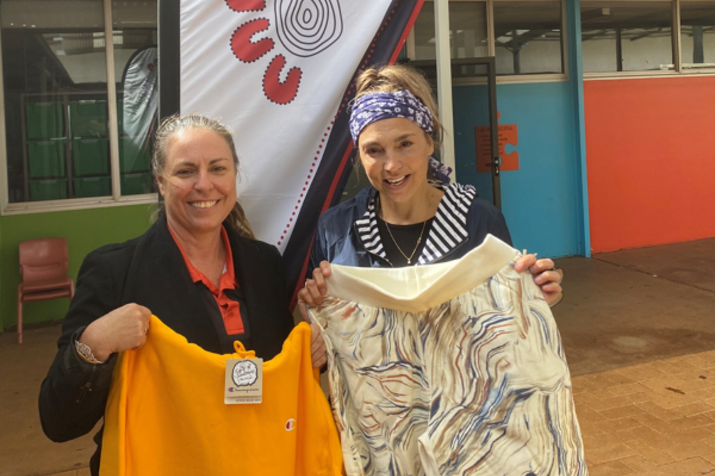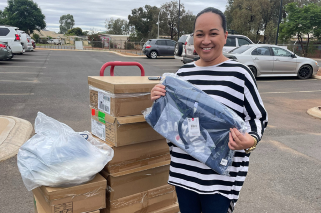 Staff from Wongutha CAPS School were grateful to receive donations of socks from Hanes (below left). They said that often students arrive at school for the first time with nothing more than the clothes they're wearing.